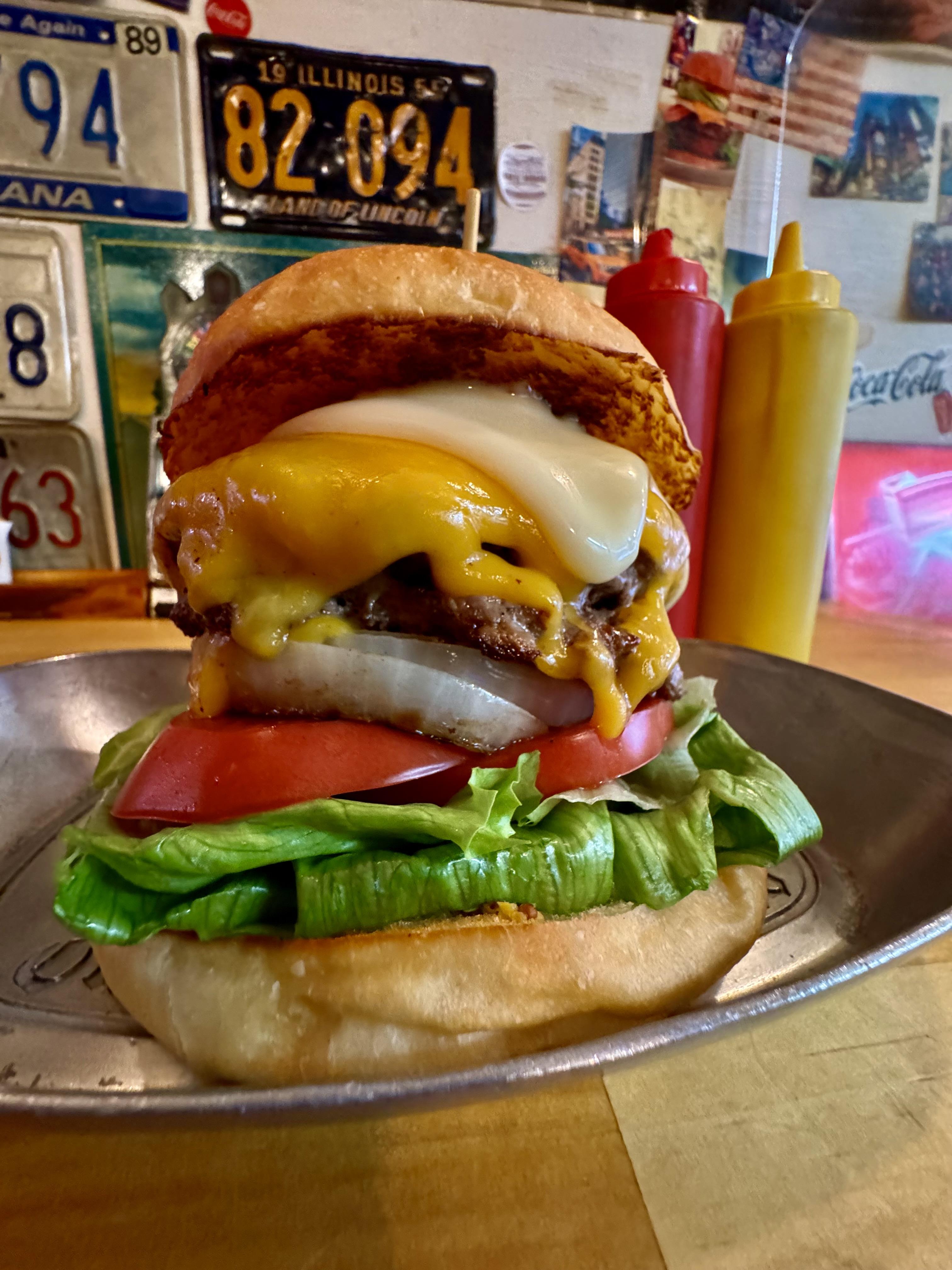 当店一番人気の古町スペシャルバーガージャンボ! ジャンボって言っても意外にも⁈女性人気がかなり高い商品にサイズとなります、これホントでウチのスタッフはいつもジャンボサイズの賄いを食べてます。