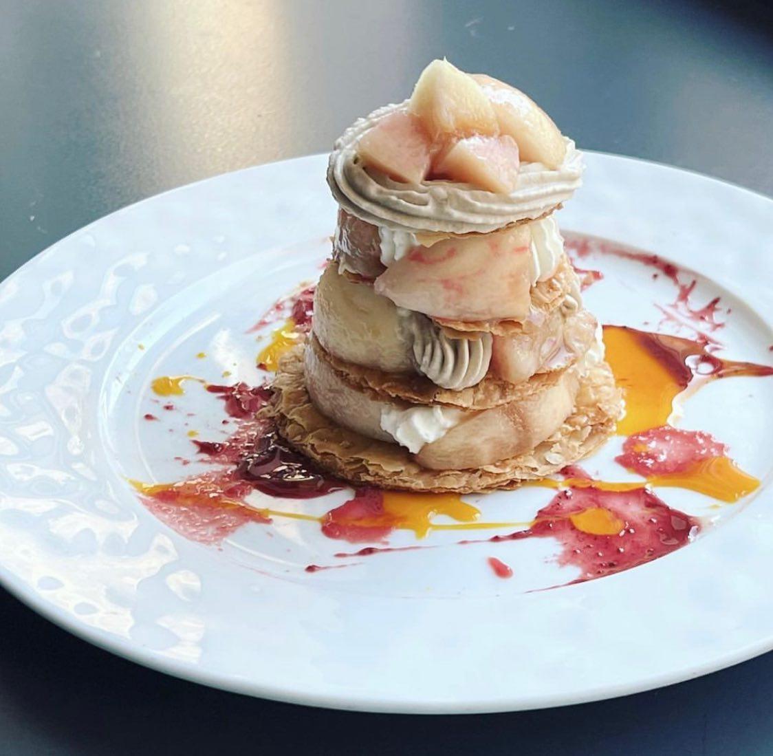 🍑白桃のミルフィーユ🍑 すぐお隣の大阪中之島美術館で開催中の「岡本 太郎 展」 岡本太郎氏をオマージュして、BOOCHICのミルフィーユも少しアートな仕上がりになっております! #boochic #ブーチック #喫茶ブーチック #ランチ #中之島ランチ #カフェ #中之島カフェ #カフェ巡り #カフェ好きな人と繋がりたい #桃 #桃スイーツ #もも#白桃のミルフィーユ #ミルフィーユ#中之島美術館 #大阪中之島美術館 #岡本太郎展 #岡本太郎 氏 #オマージュ #芸術は爆発だ #ダイビル本館
