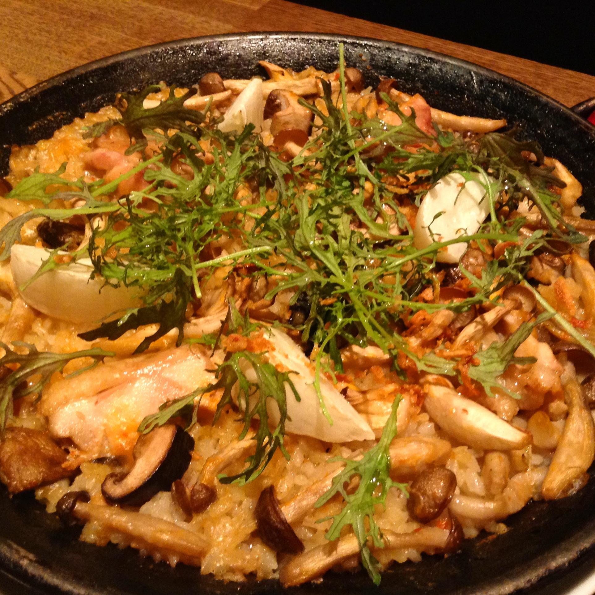 秋といえばキノコ!若鶏とキノコのパエリアが大好評です。