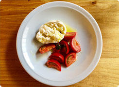 caZeuzumaki 7月のオススメ フルーツトマトとブラータチーズのカプレーゼ 濃厚なブラータと糖度の高いフルーツトマトの 素材の味がそのまま楽しめる、少しリッチなカプレーゼです。