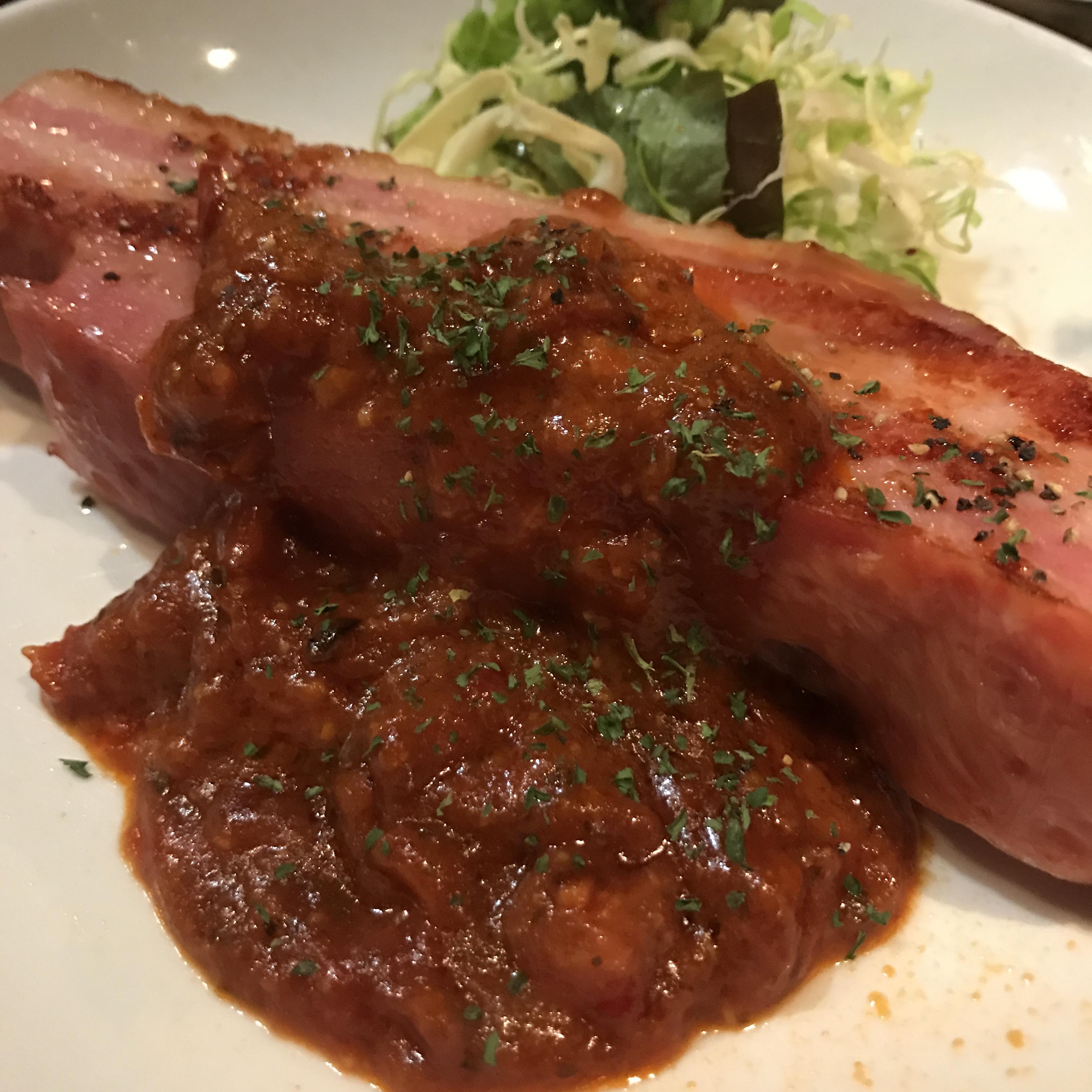 本日のまかないは、分厚いベーコンステーキです! 若いスタッフから大好評でした! 調理経験を積むため、交代制でまかないを作っています。新しいメニューの開発も、まかないを通じて行います。ぜひ、チャレンジしてみてください。
