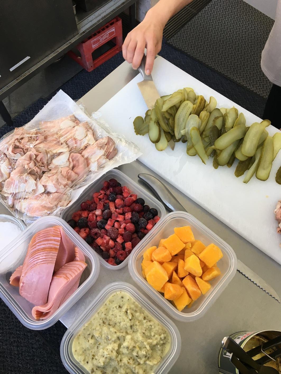 今日は土曜日☆横浜は小雨にも関わらず、ウェイティングのお客様までいらっしゃいます。ありがとうございます! さて、昨日準備の時に撮影した食材を当店で調理すると、写真のメニューになるんです!! カットしていたピクルスと、ハム2種は「キューバサンド」☆ フローズンだったオレンジ色のマンゴーは「オムニバスバーガー」☆ ソースの様に見えていたのは「かぶとクリームチーズのパテ」☆ 赤い果実は、デザートの付け合わせ用でした☆カラフル〜〜 私住吉の個人的なおすすめはキューバサンドです!自家製ハムとチーズをはさんでホットプレス!! バターが程よく香ばしくなり、パリパリとしたパンに負けない肉々しい味わいで、食べる手が止まりません♪♪じゅるり、、、 毎日のランチセットはサンプルとして実際に調理したものを店頭にディスプレイしています☆ 興味のある方は、覗きにきて下さいー!