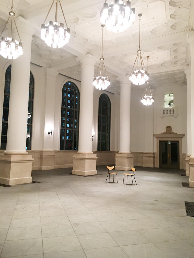 少し日が開いてしまいましたが、こんばんは!cafe OMNIBUS 採用担当の住吉です。 今日は貸切のご利用がありました。このため、カフェは一昨日の営業終了後に備品等を片付けたんです。 これをYCCでは「撤収作業」と呼んでいます。 事務局の方から「○日貸切なので、□日撤収をお願いします」との連絡が入ると、みんなで協力しながら撤収作業をするんです。 そして今日カフェはお休みです。 その撤収作業をした状態の写真が今日の写真です! ホールの大きさが分かる様に椅子を2脚置いてみました。 椅子が小さくみえますねーー!!! こんな大きな空間にあるカフェなんですよ! 明日は開店前に備品等を元通りにする「復旧作業」をする予定です☆