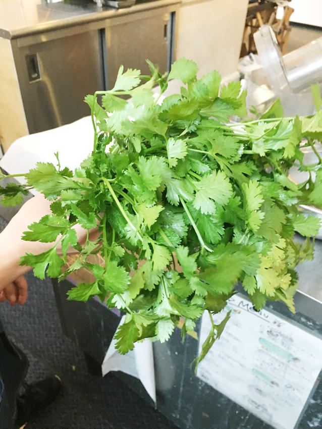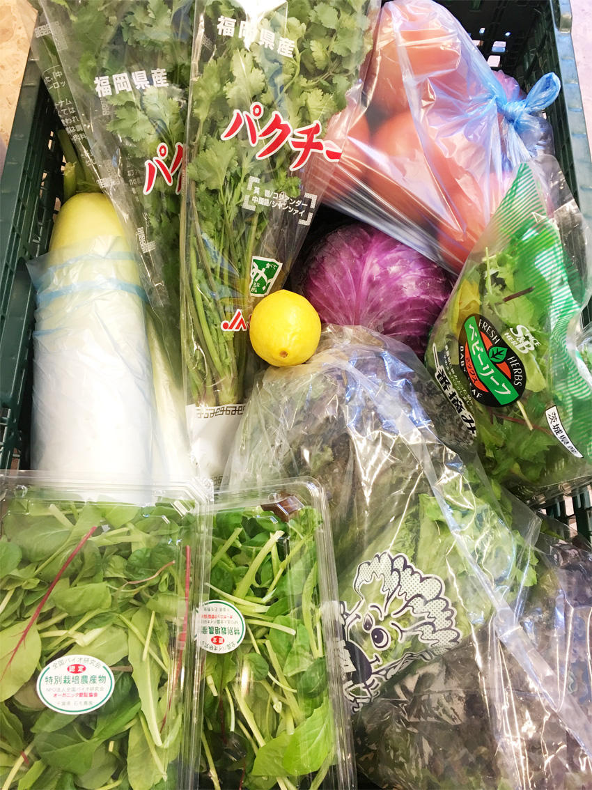 ふたたび、住吉です。 パクチーご紹介第二弾です。 今日ちょうどお野菜の配達があったので、山盛り野菜の写真もアップしちゃいます! 当店にお越し頂けるといろんなお野菜がとれますよー。 パクチー他の配達は大根、レモン、トマト、紫キャベツ、ベビーリーフなどなどです!! こちらは休憩中のA尾さんの隣でごそごそ撮影していたら「大丈夫ですか?」と怪しまれてしまいましたww お邪魔いたしましたー! そういえば、パクチーもシャンツァイもコリアンダーも同じ意味だったとは知りませんでした!!! 勉強になります。はい。
