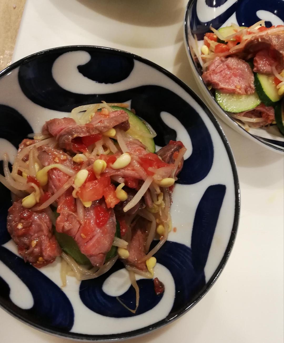 本日の賄いはローストビーフとズッキーニのカッペリーニ風。 パスタの代わりはもやしです(笑)