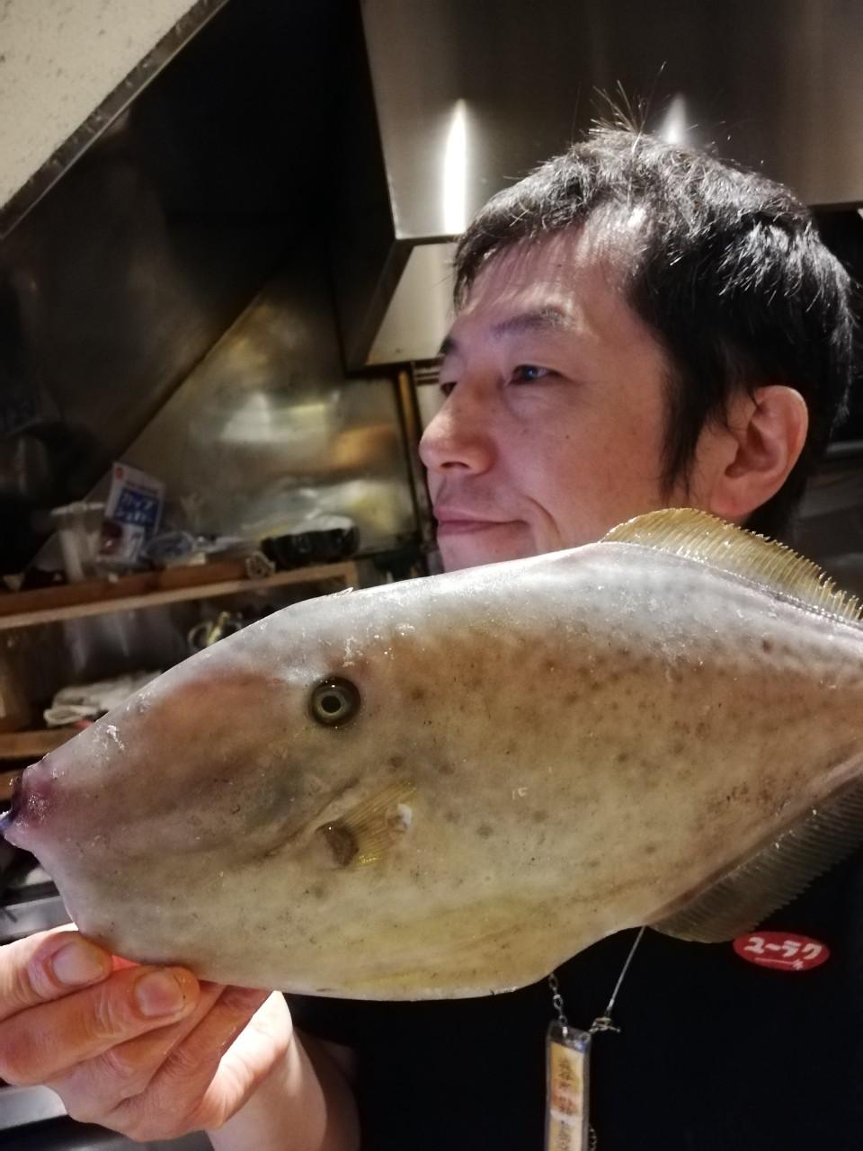 富山の海から、ウスバはぎ。こんなの泳いでる、海って凄い。刺身になってます。