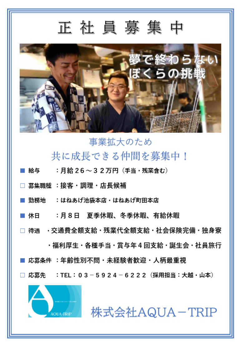 はねあげ 新店が、まかない、イチオシ食材、スタッフ紹介など、リアルタイム情報をメッセージと写真で投稿しています。