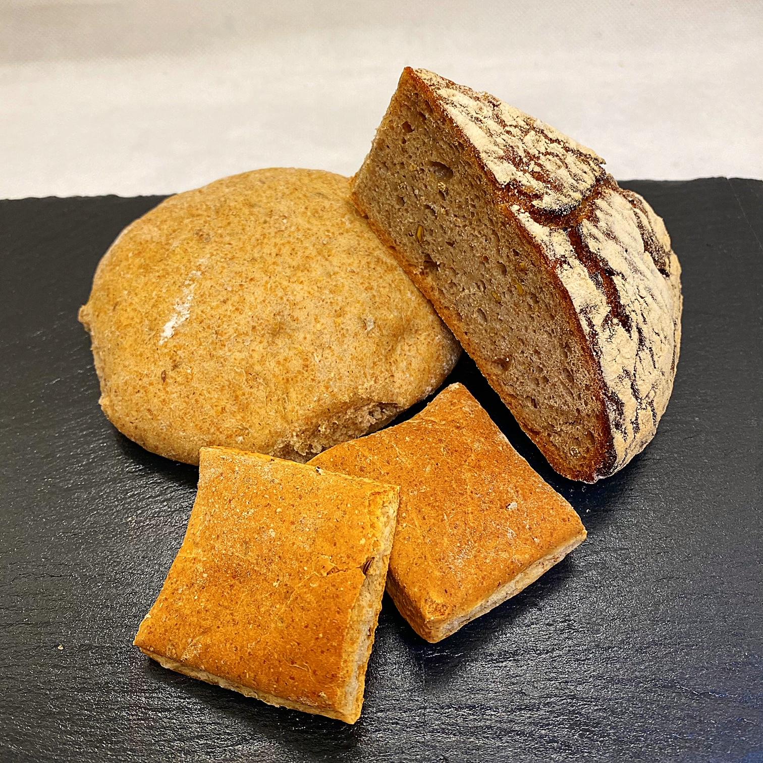 ◇三輪亭のパン◇ 当店のシェフはイタリアの南チロル地方という場所で修業したので、基本的に店内には南チロルばかりです。 パンも、しかり。 写真以外にもパンの種類があるので、毎朝ではないですが、頻繁に何かしらを焼いています。 これはテイクアウト用のパンセット。 □い手前のパンはシュッテルブロット。乾パンや煎餅みたいにかりかりです。キャラウェイシードが効いてます 奥左の丸いパンは、パールル。本当の姿は、丸パンを二つくっつけて、〇〇、双子パンになってます。パールルは双子という意味。口の中でつるんとする食感が、たまりません。 奥右の黒い▲のパンは、パニョッタプステレーゼ。プステリア谷のパンという意味。南チロルは山岳地帯ですので、谷がたくさんあります。その中の谷の一つ。しっかり目の食感は、南チロルの肉料理に抜群で、白いふわふわパンじゃ、耐えきれない部分をカバーしています。 これらのパンは、テイクアウトでも購入できますが、ディナータイムのパンでもあります。 ランチは、白い柔らかめのパンを提供しています。 興味のある方は、一度テイクアウトしてみてはいかがでしょうか??