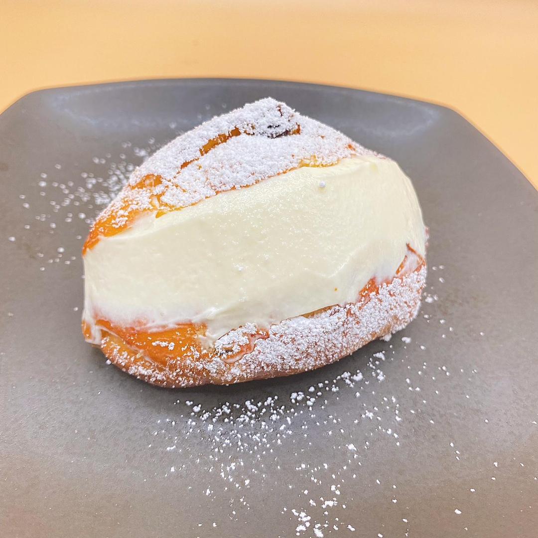 当店は南チロルの郷土料理のレストランですが、シェフが流行りもの好きなので、こんなものも、作りますよ。 近頃話題のマリトッツォです。 パンは、レーズンとアーモンドが入ったブリオッシュ生地。 クリームは、チーズが入ったクリームです。 レモンのジャムを入れたり、アンズのソースを入れたり、今度はスグリのソースを入れる予定です。 お客様に飽きられないように、いろいろ工夫して、考えて、仕込んでいますよ。