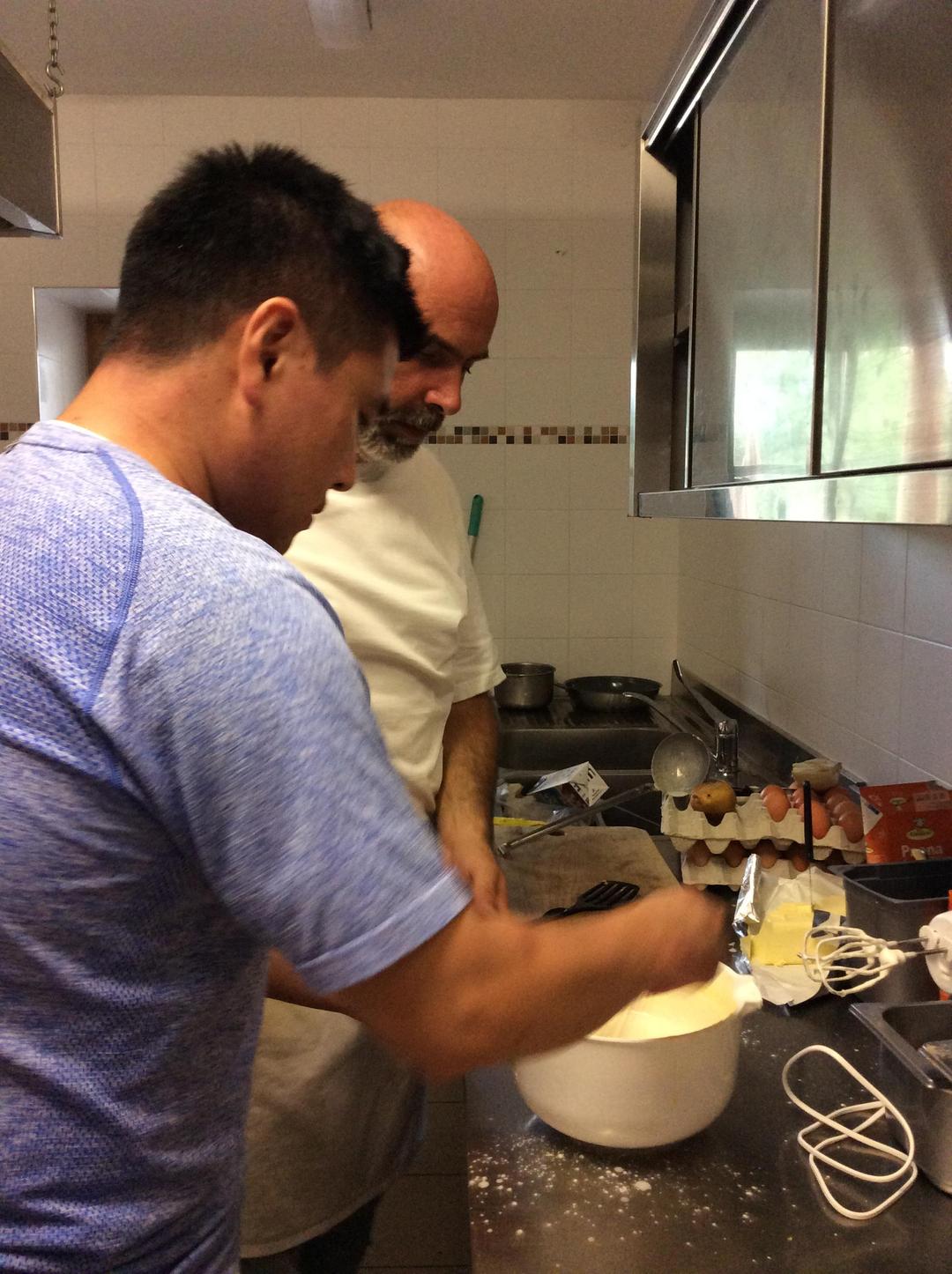 □□海外研修写真□□ 三輪シェフとペーター。 南チロルでの修業は、リストランテ「Pichler」だけでなく、Gasthof Kronenという場所にも行ったシェフ。 ホテル併設の家族経営のレストランでした。 そこの次男(ペーター)が、ガストホフとは別の場所の山小屋でシェフをしていて、そこを訪問。 カイザーシュマーレンを一緒に作っているところ。 話が盛り上がりすぎちゃって、ちょっと焦がしちゃったみたいですけど。。。。 https://www.gasthof-krone.it/ イタリアですけど、ドイツ語で表示されます。もちろん、英語とイタリア語のページもあります。 見てみてください。