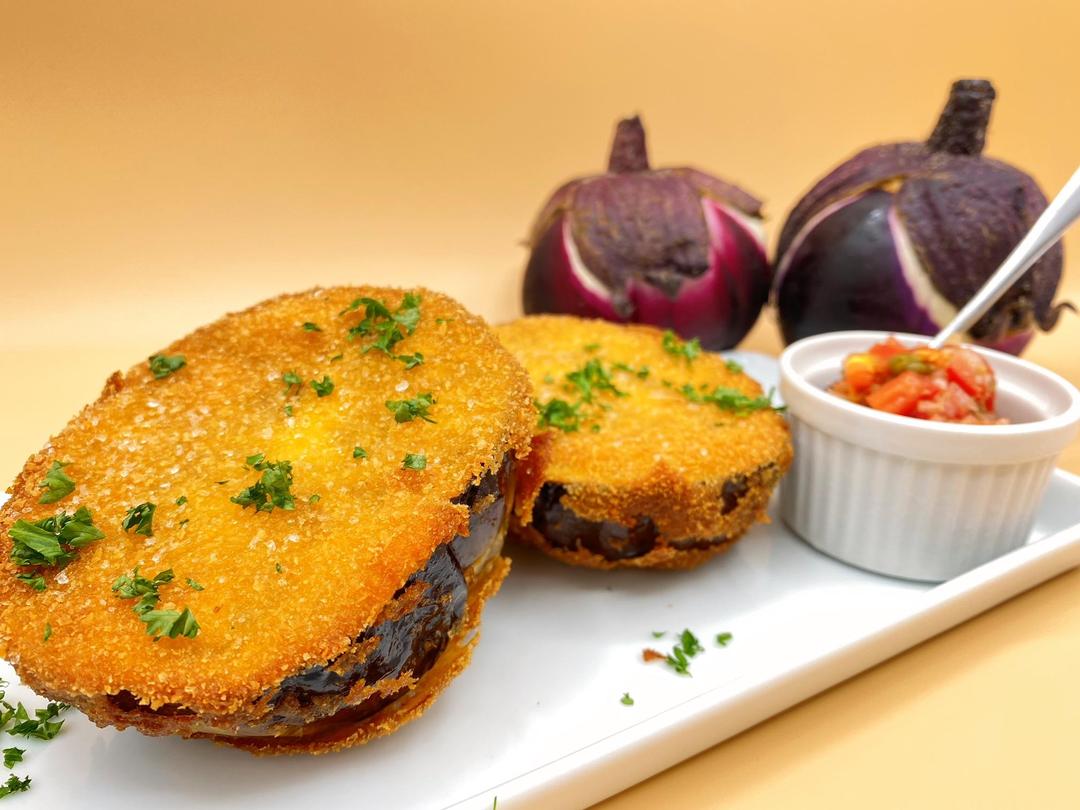 Melanzane Firenze フィレンツェナスのシュニッツェル イタリアとドイツの融合的な。 夏の定番料理。 米ナスのように丸くて、太っちょですが、皮が柔らかいので、全部きれいに食べられます。 ナス嫌いの方も、これなら食べられるかも! 今日から販売。 一度食べていただきたい!!
