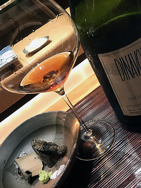 お酒のペアリングの大半は最初に泡、白そして赤、少しヒネって間に日本酒を挟んだりくらい、 軽めや重めの料理に合わせる程度、真に料理とお酒の対話が出来ている!と感じる場面は稀。 料理人とソムリエが対等に意見を交えヒトサラに1つのお酒を組み上げる・・・ 業界アルアルの”犬猿の仲”ではダメですし、何よりそれはお客さんに対して失礼。 チーム一丸となりお客様と対峙する、そんな当たり前のことを正しく実現します!
