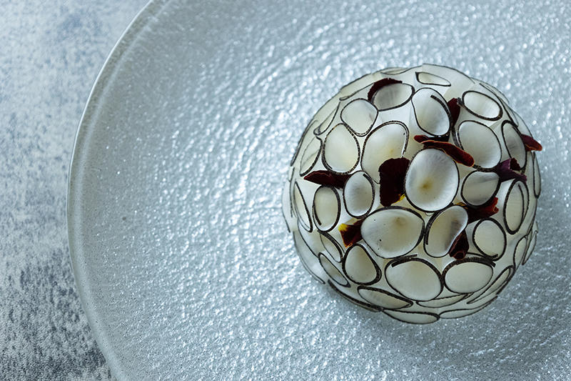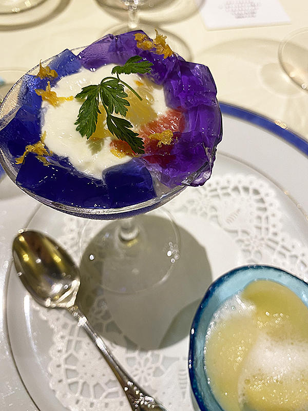 寒色は涼しげな雰囲気醸し出すには最適、そんなデザートをいただきました。 料理は科学をエッセンスとして取り入れると幅が広がり面白さも増します。 そういう”研究”も必要!