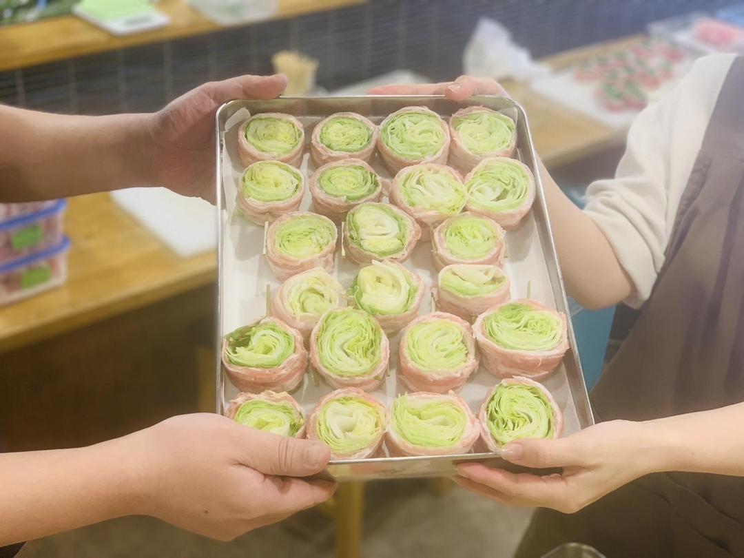 うちの生命線の野菜巻き串。手間暇かかる野菜巻き串。焼き鳥含め串打ちを社員さん、店長さん以外で巻き上げるので別の業務に集中できます! そして、今回の法人化に伴い就労支援と掛け合わせたスキームを整えます!飲食業界としても福祉業界としても革新的な働き方を作り出します!