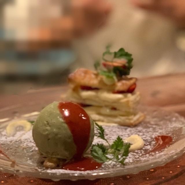 こんばんは🌙 ペスカデリア銀座店です🍓 本日ご紹介いたしますのは、この冬期間限定のデザート、いちごのミルフィーユ 自家製ピスタチオジェラートでございます😘 サクサクのパイといちごの甘酸っぱさとピスタチオの香りが引き立て合ってお食後にぴったりなデザートとなっております💗 是非ご賞味くださいませ!(^_^)