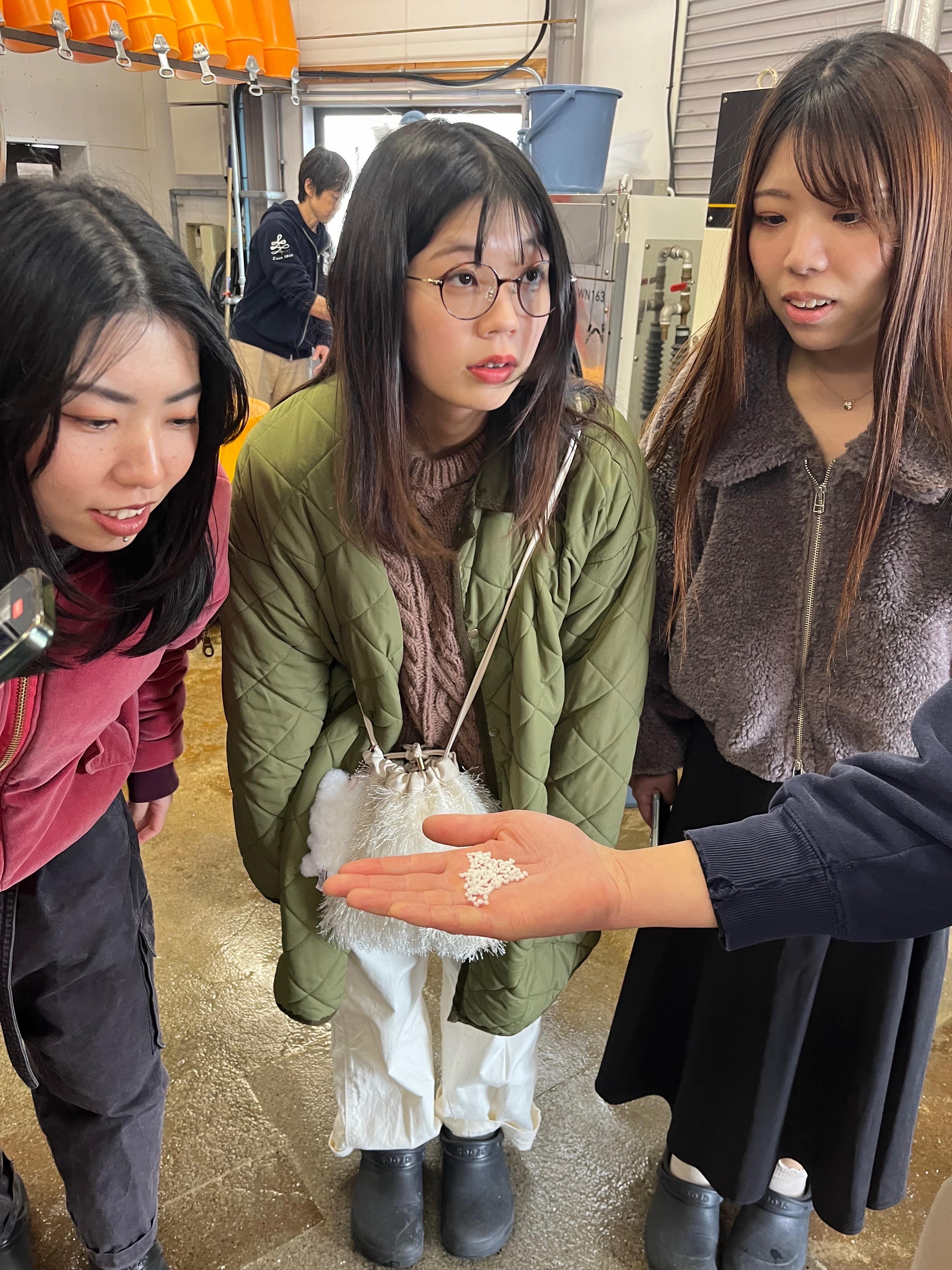 酒蔵見学の様子。 精米した後の酒米の説明を受けております。 普段ではなかなか見たり、聞いたりできない 事を教えていただくど、より日本酒への愛が深まりますね。 こういう経験や時間があるからこそ お客様への日本酒の説明にも説得力が増していきます!