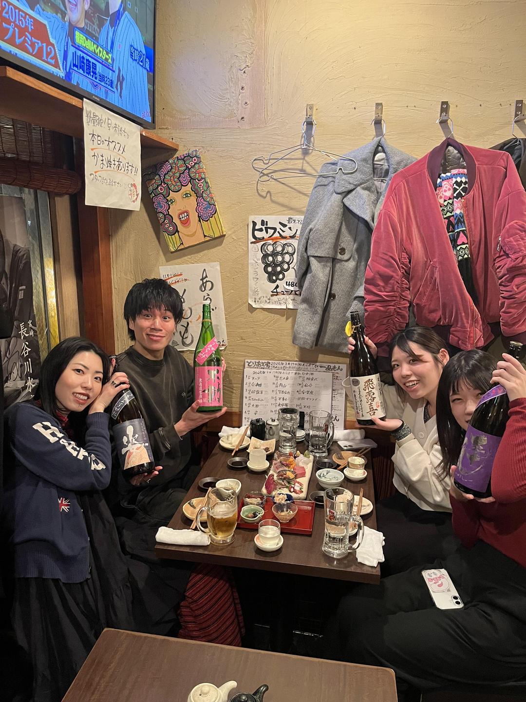定休日にアルバイトスタッフみんなと日本酒勉強会へ。 当店で勤務中ももちろんたくさんの日本酒が試飲可能ですが、他店へおもむいてのみんなでの意見交換も大事ですね! 当店は社員、アルバイトに限らずみんな日本酒が大好きです!