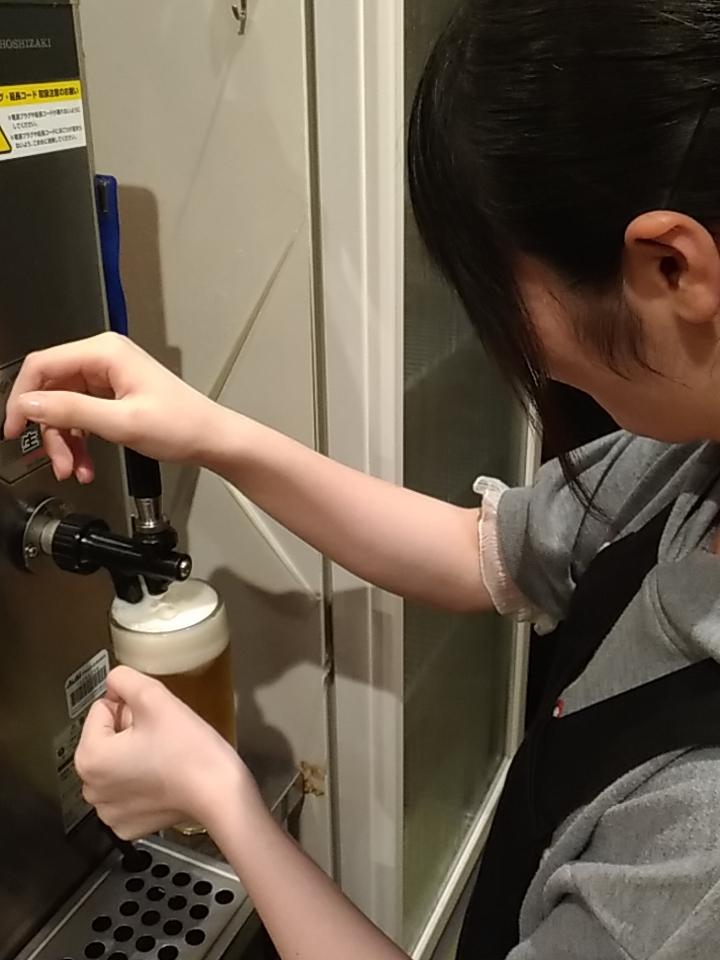 東天紅で2年目を迎えて来年就職が決まっている芹那さん。初めてのバイトが東天紅でした。 今では美味しいビールの注ぎ方も1人前になりました。