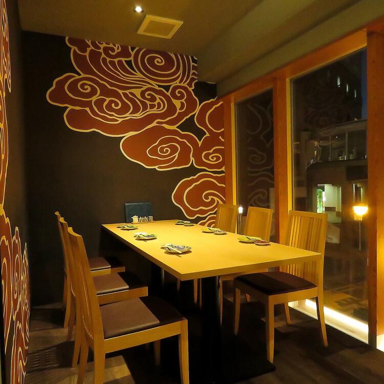 臨場感あふれるオープンキッチンのカウンター席と、テーブル席、個室のテーブル席を完備。